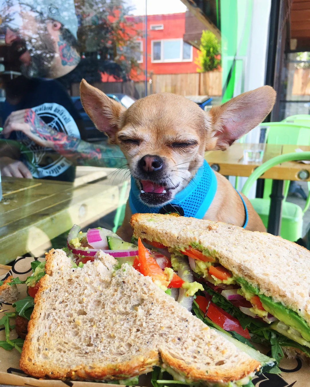 🐕 Yolandi’s fav dish: The Odyssey Bowl! Quinoa, spinach, hummus, chickpeas, artichoke tapenade, tomato, cucumber, kalamata olives and creamy dill dressing!